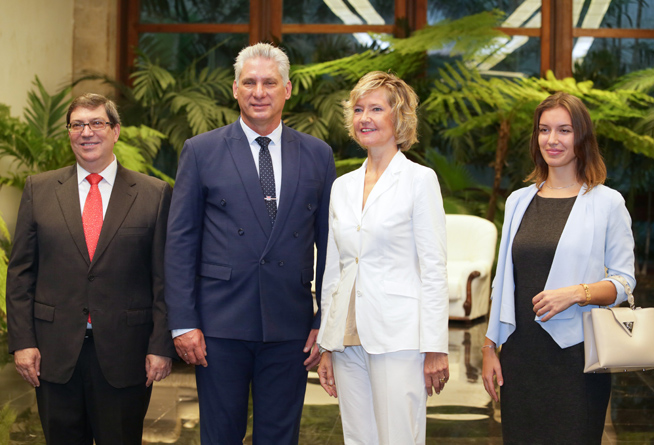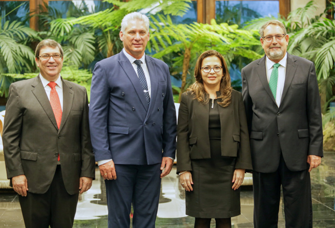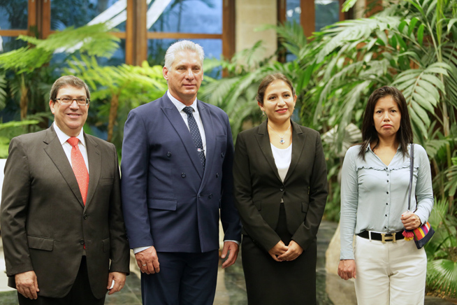 El ministro cubano de Relaciones Exteriores, Bruno Rodríguez Parrilla, acompañó a Díaz-Canel en la ceremonia, en la que presentaron sus credenciales Perry John Calderwood, embajador de Canadá; Heidrun Tempel, embajadora de Alemania; Ariana Campero Nava, embajadora de Bolivia; y Alain Thierry Jean Baptiste Ouattara, embajador de Burkina Faso.