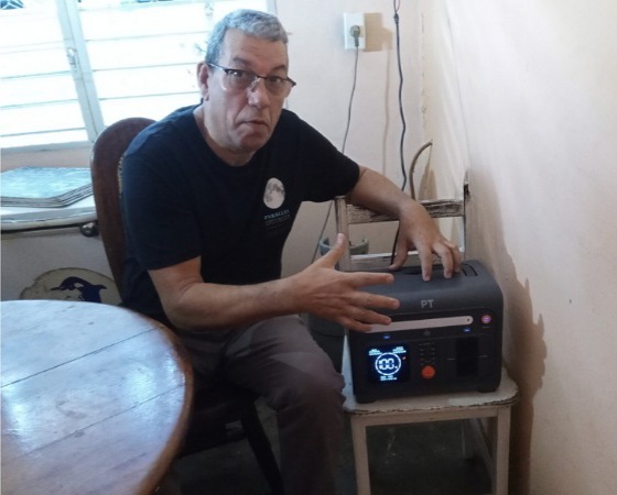 Teacher Marielys Portales Escalona, from Joaquín de Agüero y Agüero Elementary School, expresses her gratitude for the opportunity to purchase with payment facilities a kit consisting of a cell and a 1200-watt energy storage station, as recognition of her effort in the educational sector.