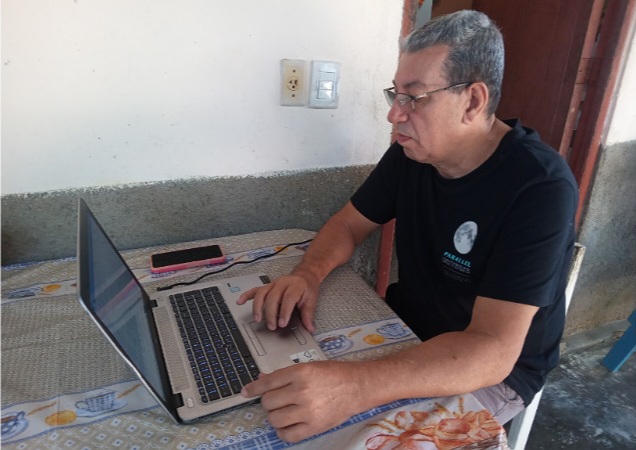 Doctor of Science Ricardo Carmona Hernández, professor at the Municipal University Center, views the installation of one of the panels awarded in the area at his home as an encouragement to continue contributing to higher education in Guáimaro.