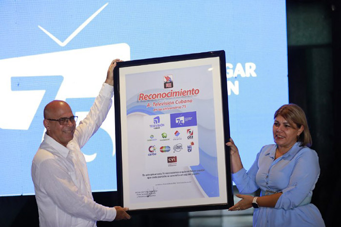 Durante el agasajo, el colectivo recibió de manos de Yuniasky Crespo Baquero, miembro del Comité Central del Partido Comunista de Cuba (PCC) y jefa del Departamento Ideológico, un reconocimiento de parte del Presidente de la República, Miguel Díaz-Canel Bermúdez, el cual reverencia el quehacer de la Televisión al servicio del pueblo.
