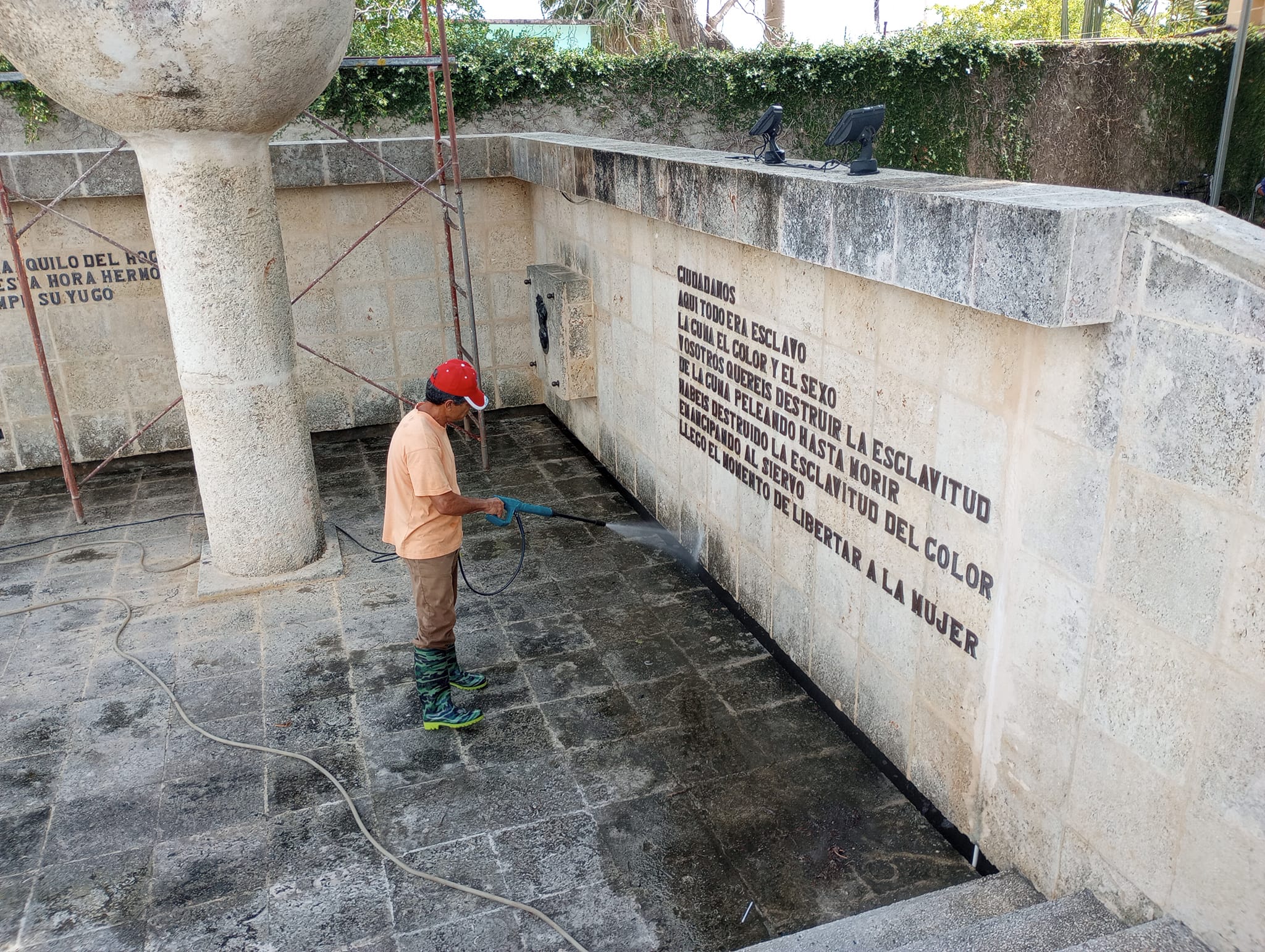 Actualmente, los obreros de la Pequeña Empresa Suárez Construcciones continúan los trabajos de limpieza a la base y el nicho del monumento inspirado en la memoria de la patriota Ana Betancourt de Mora.